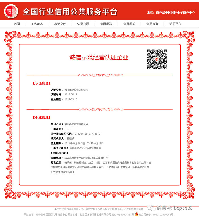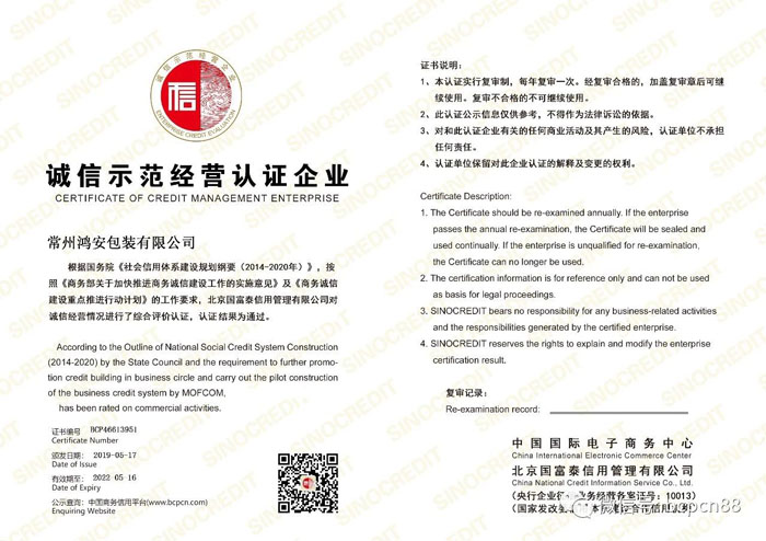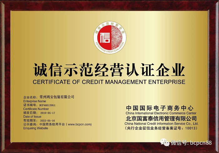 常州鴻安包裝有限公司 首頁 >> 專題 >> 信用單位示范展示
