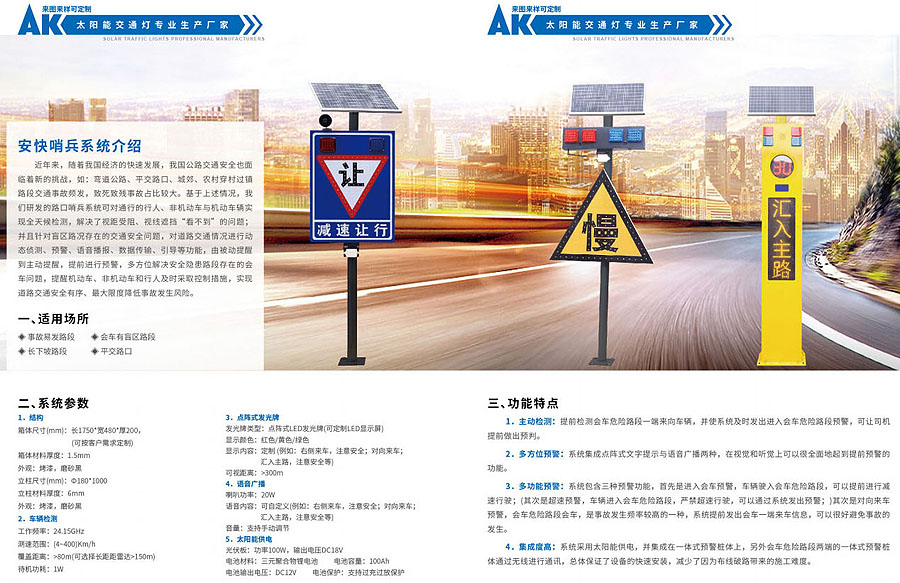 常州安快交通設(shè)施有限公司成立于2018年,位于江蘇省常州市鄒區(qū)鎮(zhèn)。是一家專業(yè)生產(chǎn)銷售交通信號(hào)電子產(chǎn)品廠家。主要產(chǎn)品有:太陽能爆閃燈、回轉(zhuǎn)燈、雷達(dá)測(cè)試儀、黃慢燈警示燈、假警車、保通機(jī)器人、移動(dòng)紅綠燈、道路智能化預(yù)警系統(tǒng)的廠家。本公司真誠的希望與客戶在臺(tái)作中加深了解、促進(jìn)友誼并期待與其建立長(zhǎng)遠(yuǎn)良好平等互利的臺(tái)作伙伴關(guān)系。我們竭誠歡迎各界朋友來公司蒞臨指導(dǎo)、洽談業(yè)務(wù)井提出寶貴意見。