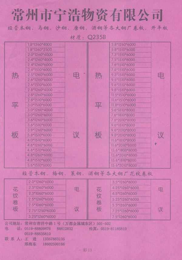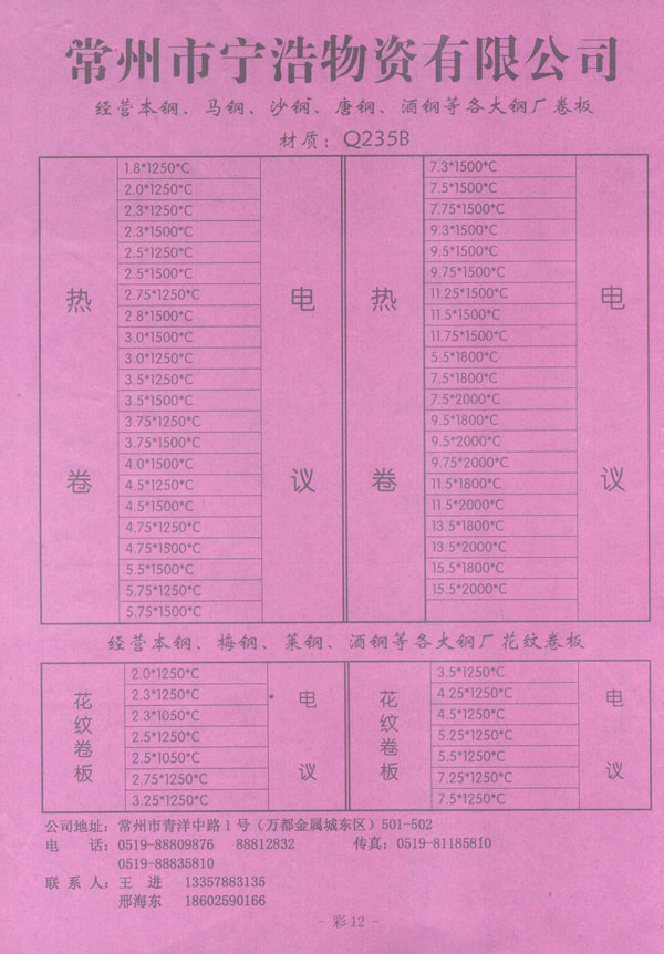 地址:常州市青洋中路1號(hào)萬都金屬城東區(qū)501、502 法人代表:刑海東 電話:0519-88809876 傳真:0519-81185810