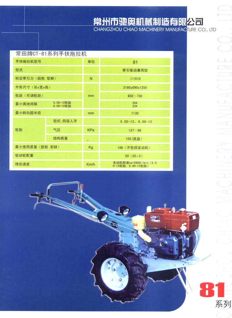 常州市馳奧機(jī)械制造有限公司是生產(chǎn)手扶拖拉機(jī)的專(zhuān)業(yè)生產(chǎn)企業(yè),公司位于風(fēng)景秀麗、人文薈萃的江蘇省常州市,緊鄰滬寧、寧常高速以及312國(guó)道,交通極為便利。公司擁有先進(jìn)的手扶拖拉機(jī)生產(chǎn)線,主要生產(chǎn)81/91,121/151型手扶拖拉機(jī),產(chǎn)品均為國(guó)家農(nóng)機(jī)購(gòu)置補(bǔ)貼產(chǎn)品。 公司堅(jiān)持以科技興企業(yè),在提高產(chǎn)品技術(shù)含量的同時(shí),加強(qiáng)產(chǎn)品質(zhì)量、售后服務(wù)方面的監(jiān)督與管理,根據(jù)市場(chǎng)需求提升改進(jìn)和研發(fā)新產(chǎn)品,使公司產(chǎn)品得到了市場(chǎng)的認(rèn)可,贏得了廣大農(nóng)民用戶(hù)的一致好評(píng)。 公司將本著“誠(chéng)信經(jīng)營(yíng)、質(zhì)量第一、客戶(hù)至上”的經(jīng)營(yíng)理念,立足現(xiàn)在、著眼未來(lái),以打造常州一流的農(nóng)機(jī)品牌為目標(biāo),在提升產(chǎn)品技術(shù)、保障產(chǎn)品質(zhì)量的同時(shí),不斷研發(fā)新產(chǎn)品,最大程度的滿足用戶(hù)需求,為我國(guó)農(nóng)業(yè)機(jī)械現(xiàn)代化發(fā)展做出應(yīng)有的貢獻(xiàn)!