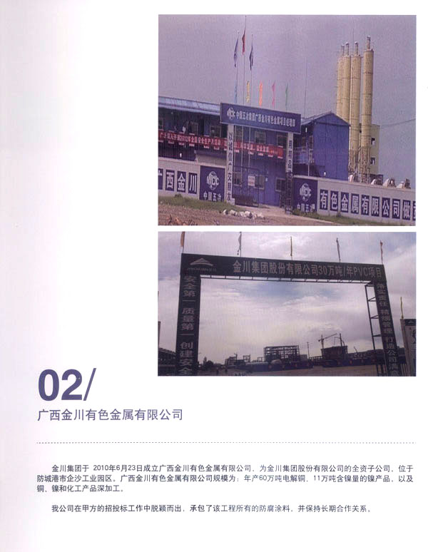 常州市武進(jìn)江南防腐材料有限公司位于橫山橋鎮(zhèn)北工業(yè)園區(qū),南臨滬寧鐵路,西臨常州國(guó)際機(jī)場(chǎng),北臨長(zhǎng)江,滬寧高速公路貫通全鎮(zhèn),并設(shè)有橫山出口,交通十分便捷。江南涂料占地35000平方米,建筑面積20000平方米,公司通過(guò)ISO9001:2000國(guó)際質(zhì)量體系認(rèn)證,是生產(chǎn)各類高效防腐涂料的專業(yè)廠家。 產(chǎn)品有含氟高氯化聚乙烯重防腐涂料、氯磺化聚乙烯系列、環(huán)氧樹脂系列、氯化橡膠系列、聚氨酯系列、醇酸樹脂系列等十大系列。選材精良,配方優(yōu)化,檢測(cè)器具齊全,年生產(chǎn)能力萬(wàn)余噸。 江南防腐的B-98型隔熱降溫涂料是以改變傳統(tǒng)隔熱材料而采用薄涂層的形式來(lái)達(dá)到隔熱降溫的一種新型涂料。具有良好的對(duì)陽(yáng)光的熱反射率和高的折光指數(shù),還有優(yōu)良的防腐、防水、防污染性能,涂層耐光、耐熱老化、抗紫外線。 江南防腐引進(jìn)國(guó)外先進(jìn)技術(shù),成功研制氟碳系列防腐涂料,使用年限達(dá)20年,具耐多種化學(xué)品腐蝕、耐磨、裝飾保潔、超長(zhǎng)抗老化等功能為一體,在涂料界具有“涂料之王”的佳稱。