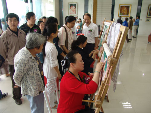 狄靜亂針繡工作室由江蘇省工藝美術(shù)大師,江蘇省非物質(zhì)文化遺產(chǎn)傳承人,研究員級高級工藝美術(shù)師狄靜創(chuàng)立于1999年,現(xiàn)已初具規(guī)模,每年能手工繡制作品上百幅,是國家、省、市政府對外交流禮品的指定繡制單位,當(dāng)之無愧地成為宣傳常州特色手工藝品的主陣地,常州最具影響力的對外藝術(shù)交流名片。 2004年,狄靜亂針繡工作室受常州市文廣新局、常州劉海粟美術(shù)館的邀請,在劉海粟美術(shù)館內(nèi)開設(shè)常州亂針繡館。作為狄靜亂針繡工作室常年的對外展示窗口,現(xiàn)在常州亂針繡館每天接待參觀人數(shù)達(dá)百余人次。2008年6月,常州狄靜亂針繡工作室受市文廣新局和新北區(qū)政府的邀請,加盟坐落薛家鎮(zhèn)“華夏工藝美術(shù)產(chǎn)業(yè)博覽園”,至今年接待參觀人達(dá)數(shù)萬人。 狄靜亂針繡工作室的作品以繡工精到、形象逼真、色彩豐富、立體感強(qiáng)等特點被眾多收藏家收藏,遠(yuǎn)銷世界各國。該工作室的作品多次被中國政府作為國禮贈送給斯里蘭卡總統(tǒng)、阿曼國王和王子、美國LU公司總裁副總裁全家、美國總統(tǒng)顧問團(tuán)顧問張緒通教授等。常州市政府也在本工作室訂制亂針繡肖像贈送給香港政務(wù)司司長唐英年、日本議員、和為常州建設(shè)發(fā)展作出貢獻(xiàn)的各國友人。工作室的人像繡藝術(shù)作品尤為被世界各地藝術(shù)品收藏家關(guān)注,紛紛前來定繡,著名的香港實業(yè)家李兆基先生先后兩次到狄靜亂針繡工作室,定繡了自己的大幅肖像。臺灣名人焦定標(biāo)先生、香港著名實業(yè)家查濟(jì)民先生、美國通用公司總裁等都到狄靜亂針繡定繡自己和家人的肖像。 狄靜亂針繡工作室在弘揚(yáng)傳統(tǒng)文化,培育優(yōu)秀傳承人才的道路上始終堅持不懈。2004年起,在常州文化館內(nèi)開設(shè)免費(fèi)亂針繡培訓(xùn)班,到目前已有1000多名學(xué)員學(xué)習(xí)了亂針繡藝術(shù)。2009年,應(yīng)重慶市大渡口區(qū)政府的邀請,狄靜將亂針繡培訓(xùn)班開到重慶,為重慶市的學(xué)生和部分下崗女工傳授亂針繡技藝。狄靜亂針繡工作室內(nèi),還有不遠(yuǎn)萬里從德國、泰國、韓國、捷克斯洛伐克等國慕名來求學(xué)的外籍學(xué)生,她們現(xiàn)在都已有作品問世。其中泰國學(xué)生陳玉鸞女士,懷著對國王無限崇敬的心情,在狄靜老師悉心指導(dǎo)下繡出了一幅泰國普密蓬國王的繡像。2008年1月,狄靜受到泰國國王的邀請,與陳玉鸞女士一起走進(jìn)泰國王宮親手將作品敬獻(xiàn)普密蓬國王,普密蓬國王對形神兼?zhèn),絲光閃爍的藝術(shù)珍品十分稱頌和贊賞。 多年來,狄靜亂針繡工作室直面挑戰(zhàn),不斷壯大發(fā)展亂針繡工作室的規(guī)!,F(xiàn)工作室擁有一支以狄靜為首的、技藝精湛的、刺繡精英為主體的繡娘團(tuán)隊,是一個高水平、高素質(zhì)的亂針繡藝術(shù)群體,集亂針繡精品繡制、展示和技藝研究為一體,以打造精品的理念創(chuàng)作多題材、多層次的亂針繡藝術(shù)精品。