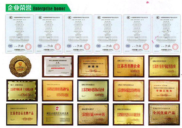 宇鋒車業(yè)創(chuàng)建于1995年,廠區(qū)面積10萬平方米,擁有專業(yè)技術(shù)人員100余名,是國內(nèi)領(lǐng)先的電動車研發(fā)與生產(chǎn)制造的廠家,也是專業(yè)從事研究、開發(fā)、制造電動車和新能源車的高新技術(shù)企業(yè)。 作為中國三輪車行業(yè)的開拓者,宇鋒擁有行業(yè)先進的機器人焊接線、自動化前處理線、自動化電泳噴涂和烘烤設(shè)備,公司擁有一流的整裝作業(yè)線,包括先進的沖擊、焊接、涂裝和總裝四大高品質(zhì)整車制造工藝設(shè)備,嚴格按汽車的標準來要求自己的產(chǎn)品。 宇鋒工廠各種檢測設(shè)備齊全,采用先進的生產(chǎn)工藝,高標準的質(zhì)量管理體系,產(chǎn)品質(zhì)量嚴格把控。已形成電動三輪車和新能源車的研發(fā)、制造、銷售和售后為一體的星級服務(wù)體系,堅持為消費者提供6S服務(wù)體系。 宇鋒產(chǎn)品擁有電動三輪車、新能源車和電動兩輪車等八大系列近百個型號品種,公司堅持自主研發(fā)自主制造,并順利通過ISO9001:2008質(zhì)量管理體系認證和ISO14001:2004國際環(huán)境管理體系認證。 宇鋒車業(yè)獲得工信部摩托車生產(chǎn)企業(yè)資質(zhì), 已有二十多款車型通過工信部目錄公告。宇鋒電動三輪車通過國家CCC認證,并由中國人民財產(chǎn)保險股份有限公司承保,有大合格證和車輛一致性證書,宇鋒電動三輪車上牌安全無憂! 在出口方面,宇鋒積極配合國家“一帶一路”政策的開展,在電動車行業(yè)里率先踐行走出去的戰(zhàn)略,依靠過硬的產(chǎn)品質(zhì)量和優(yōu)質(zhì)的服務(wù),贏得了國外客戶的信賴和歡迎,2018年宇鋒車業(yè)在印度新德里建立制造工廠并良好運營,宇鋒產(chǎn)品遠銷印度、中亞、東南亞等二十多個國家,產(chǎn)品出口連續(xù)多年位居行業(yè)突出位置。
