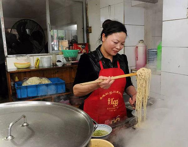 遙觀娟娟面館:青菜香菇雞蛋面 2016年歲末年初,武進(jìn)區(qū)商務(wù)局、武進(jìn)烹飪協(xié)會(huì)、《武進(jìn)日?qǐng)?bào)》等單位,在全區(qū)范圍內(nèi)開展“武進(jìn)招牌面”評(píng)選活動(dòng),最終,遙觀娟娟面館被評(píng)定為“武進(jìn)招牌面”第一名。 2008年,馬玉娟所在的企業(yè)面臨倒閉,她開始謀求自己的創(chuàng)業(yè)之路。第一個(gè)想法就是開一家面館,因?yàn)槊妹民R小娟喜歡燒菜,親戚朋友吃了她燒的菜,無不嘖嘖稱贊。姐妹倆一合作,店名自然叫“娟娟面館”。 開面館,一面裝修,一面領(lǐng)“衛(wèi)生許可證”、“工商營業(yè)執(zhí)照”;再就是外出求藝學(xué)燒菜。姐妹倆兵分兩路:玉娟去學(xué)小炒,小娟去學(xué)大葷澆頭,不久便開張營業(yè)了。 行家吃面先品湯。娟娟面館的白湯是最樸實(shí)的燒法,它用大肉、排骨熬制4個(gè)小時(shí),湯色清亮,香氣撲鼻。至于拌面湯,全部都是紅燒肉汁,加上香蔥、雞精等十多種調(diào)料,自然是色香味俱佳。 娟娟面館點(diǎn)單率最高的是青菜香菇雞蛋面,一菜一菇一蛋一湯,樸實(shí)無華,價(jià)廉物美,老少皆宜,久吃不厭,非常適宜我國人口的營養(yǎng)膳食結(jié)構(gòu)。其中小青菜是當(dāng)?shù)剞r(nóng)家的家常菜;雞蛋是當(dāng)?shù)毓麍@散養(yǎng)的母雞所生,味道自然地道純正了。 娟娟面館自開張以來,幾乎天天顧客盈門,高峰時(shí)要在門外等候。如今姐姐的兒子和妹妹的女兒都已上陣傳承,并在湖塘鎮(zhèn)馬杭紡織城附近新開了一家連鎖面館,每天要賣出300-500碗各式面點(diǎn)。