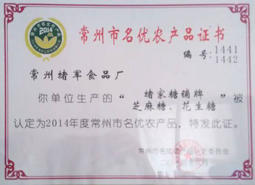 “堵家糖鋪”牌芝麻糖。2013年度生產(chǎn)量已達(dá)100噸左右實(shí)現(xiàn)銷量額為250萬元,同時(shí)本廠的產(chǎn)品已進(jìn)入“瑞和泰"“好比家”“名仁”常州機(jī)場(chǎng)等高端銷售區(qū)域,并與“瑞和泰”形成戰(zhàn)略合作伙伴關(guān)系:為瑞和泰貼牌加工生產(chǎn)。 常州堵軍食品廠生產(chǎn)的芝麻糖是以:大米和麥芽用相傳百年歷史的循環(huán)水濾蒸煮法提煉出其中的麥芽糖漿,再用芝麻,花生,桂花,橘皮,面粉為輔料,歷23道工序手工制作而成。它是一種具有營(yíng)養(yǎng)豐富性和抗衰老性食品。富含蛋白質(zhì),脂肪,維生素A,維生素B,鈣鐵鎂,卵磷脂,硫胺素等營(yíng)養(yǎng)元素。 全麥芽芝麻糖是一種獨(dú)具地方特色的大眾性休閑食品。有其獨(dú)特的地方性和文化性。無論是逢年過節(jié)還是日常生活都是饋贈(zèng)親友,款待賓客的首選佳品之一。