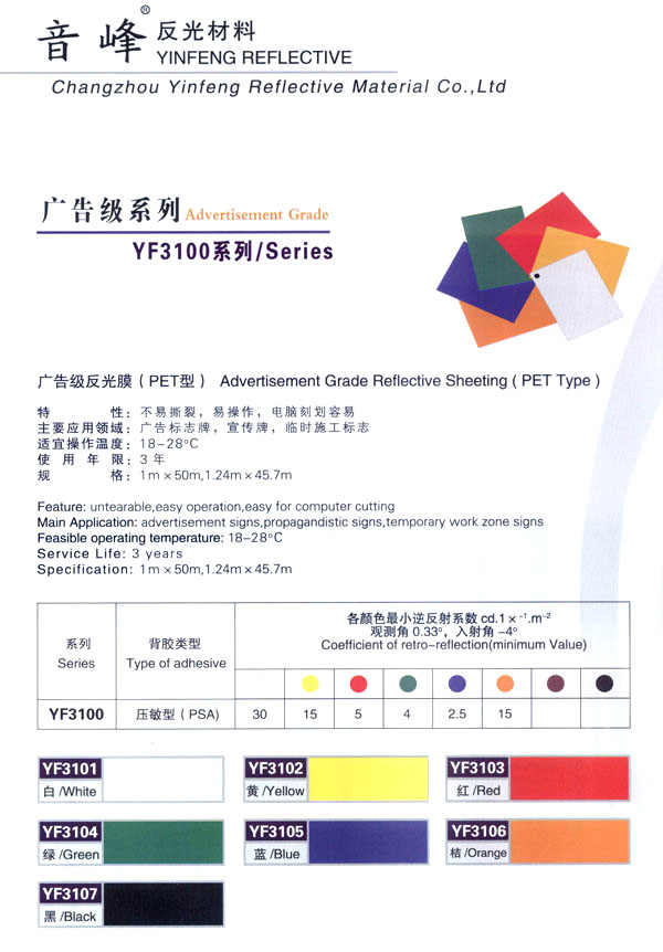 音峰集團是一個多種經(jīng)營的綜合性高科技股份公司,從事反光材料、交通安全設施、絲網(wǎng)印刷、揚聲器、紡織等產(chǎn)品的研制開發(fā)、生產(chǎn)銷售。公司自創(chuàng)立以來,堅持走科技發(fā)展的道路,以滿足客戶需求為公司宗旨,取得了令人矚目的經(jīng)濟效益和社會效益,使公司規(guī)模不斷擴大。 音峰反光材料有限公司是音峰集團下的一個新銳的子公司,主要從事系列反光材料及發(fā)光膜的研制和開發(fā)。公司擁有國內最先進的生活殘設備,最專業(yè)的研制、開發(fā)人員,公司還投入了大量的資金,年產(chǎn)值達1.5億。 公司主生產(chǎn):廣告級反光膜、工程級反光膜、車牌級反光膜、高強級反光膜、廣告級反光雙色條、發(fā)光膜、噴繪反光膜、晶彩格、電信電力反光膜,鍍鋁膜等等..........根據(jù)國家指令法規(guī):反光材料的領域,如公路標志、標牌、標線、礦山、鐵路等......... 反光膜廣泛應用于各種廣告標志牌,公路鐵路的導向牌、指示牌、地名牌、車牌,道路交通標志,物業(yè)小區(qū)標志,臨時施工標志,廣告宣傳、安全防護、高等級公路的各種警示標語,標識牌等。 公司堅持以生產(chǎn)力標準衡量企業(yè)效益和員工業(yè)績,堅持“以人為本,提倡知人、容人、用人、培養(yǎng)人,使企業(yè)具有極強的凝聚力,在激勵的市場競爭中保持旺盛的生命力!笨萍急WC品質,服務完善產(chǎn)品“是我們永遠不變的信念。 隨著世界的發(fā)展,企業(yè)經(jīng)營進入了全球化時代,本著這一共識,企業(yè)憑借自身的技術優(yōu)勢,積極參加國際間合作與競爭,努力拓展國內與國際市場,公司愿與國內外各界朋友在更廣泛的領域攜手合作,共同發(fā)展,共創(chuàng)繁榮。
