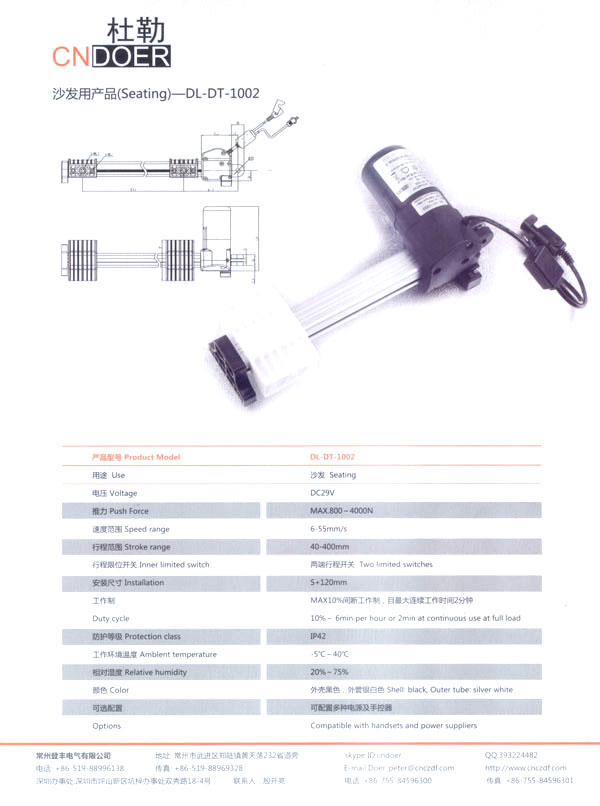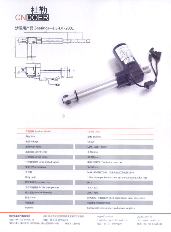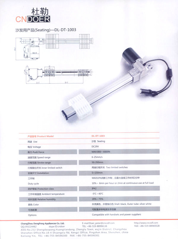 常州登豐電氣有限公司位于人杰地靈的江南古城—常州武進區(qū)鄭陸鎮(zhèn)東青。緊臨常州火車站、滬寧高速公路、312國道、長江港等,交通十分便捷。 公司最早創(chuàng)辦于1989年,歷經20多年的艱苦創(chuàng)業(yè),本著“誠信為本、品質至上”的經營理念,公司生產的“武微”牌空調電機、“蘇杰”牌電動車電機和采用國外先進技術制作的動力強勁、同時具有過載保護和消音裝置的綠色環(huán)保產品:“登豐”、“聚美”牌食物垃圾處理器。這些產品在全國各地市場均享有較高的知名度。 如今,公司為謀求新的發(fā)展,立足于國內,放眼于國際市場,投入了大量的人力、財力、物力,購置了先進的全自動生產流水線、全自動繞線機和各類精密的測試儀器,多功能隔音房等設施,全新推出了具有美好前景和廣闊市場的主打產品:“杜勒”牌系列線性推桿及各類配套電機。該產品已通過ISO9001認證,產品外觀新穎、制作精良、噪音小、操作靈活簡便,暢銷國內,遠銷國外,被廣泛應用于電動沙發(fā)、醫(yī)療護理床、手術床、按摩椅等眾多領域!岸爬铡碑a品已被越來越多的客戶所青睞和認可! 公司竭誠歡迎各界朋友、新老客戶前來洽談合作,共謀發(fā)展。我們也將不斷開拓創(chuàng)新,提高產品質量,完善售后服務體系,努力打造成為行業(yè)先鋒企業(yè)!