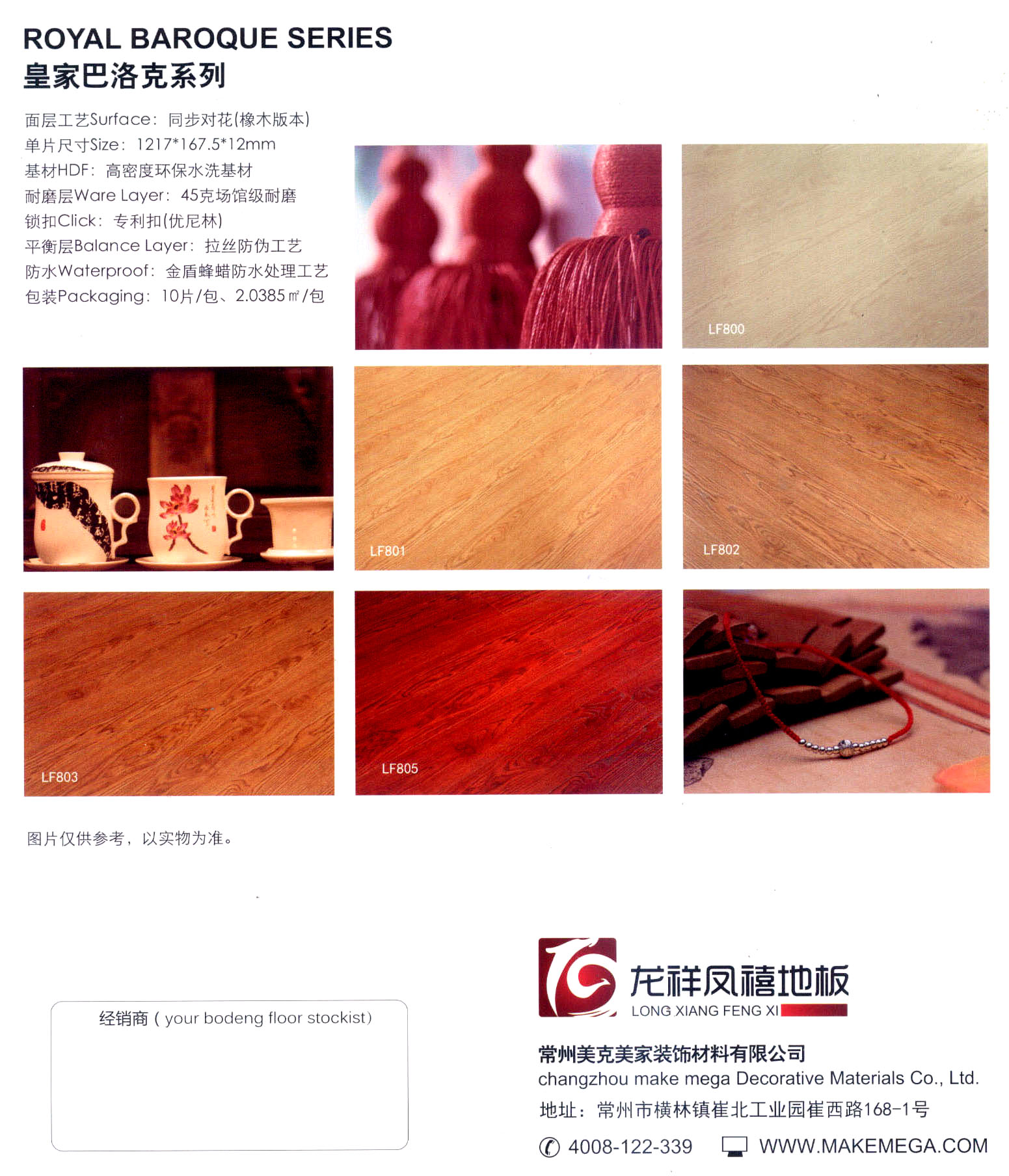 常州美克美家裝飾材料有限公司是專業(yè)制造和銷售中高端地板的知名企業(yè),也是中國強化木地板之都龍頭企業(yè)之一。位于我國長三角城市經(jīng)濟最發(fā)達地區(qū)常州市。公司持有商標 “龍祥鳳禧®” , “曼寧頓®”和“MAKEMEGA”® 三大品牌。 公司擁有國內(nèi)外高科技地板生產(chǎn)技術(shù), 2011年投入了800萬元進行技術(shù)改造,引進代表世界最高先進水平的德國威力(WEINIG)四面刨開槽生產(chǎn)線及德國藍幟(LEITZ)金剛石刀具,并攜手夏特.IP.大亞.羅賓等國際知名公司。年產(chǎn)量將達到600萬平方米。產(chǎn)品有意大利高級名師設(shè)計, 分為簡約中國式風格,現(xiàn)代風格,簡歐風格,復(fù)古風格等系列,從而確保了地板的款式新穎,質(zhì)量過硬,健康又環(huán)保。公司現(xiàn)已通過ISO9001質(zhì)量管理體系認證,ISO14001環(huán)境管理體系認證等多部門的認可和獲獎。目前產(chǎn)品已銷售到全國各大建材超市等多家大型連鎖店,并為國內(nèi)某幾家著名地板品牌承擔OEM(貼牌加工)。公司已在全國設(shè)立幾十家專賣店,已有20多萬㎡的大型工程經(jīng)驗, 例如:中國海軍療養(yǎng)院, 上海復(fù)旦大學(xué)科研樓, 浙江電視臺(部分), 深圳龍崗體育中心,北京國家汽車質(zhì)量監(jiān)督檢驗中心大樓,等大型工程。 常州美克美家裝飾材料有限公司掌握世界領(lǐng)先科技, 立足中國, 傲視亞洲, 面向全球, 在公司董事長的戰(zhàn)略指導(dǎo)下,實施品牌戰(zhàn)略,全球化戰(zhàn)略。 常州美克美家裝飾材料有限公司時刻挑戰(zhàn)自我,挑戰(zhàn)未來,為創(chuàng)造出美譽全球的產(chǎn)品,滿意百分百的服務(wù),樹立高端品牌形象,全力打造地板第一奢侈品牌。