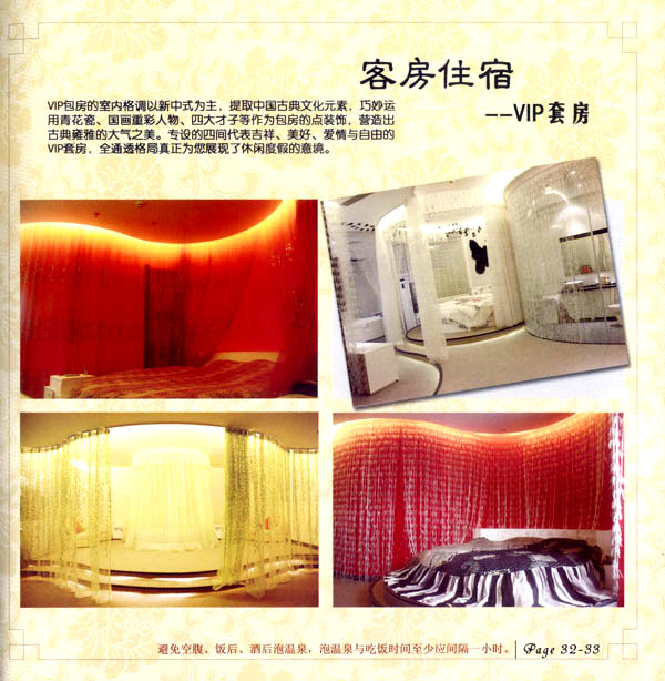 花都溫泉水城包括洗浴區(qū)、戲水世界、露天溫泉、自助餐廳、生態(tài)房、別墅區(qū)、紅文化房、VIP區(qū)等多種功能區(qū)域,是集溫泉養(yǎng)生、休閑住宿、演藝會(huì)務(wù)為—體的休閑度假勝地,給賓客帶來江南小鎮(zhèn)的浪漫水城之旅。