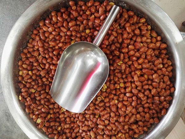 湖塘花東街上的“石頭炒貨店”是20多年的老字號了。上個世紀(jì)90年代,二十郎當(dāng)歲的“石頭”一一石愛軍從徐州來到武進(jìn),就在這條街上擺了個炒貨攤!皫灼椒矫椎男〉財,邊上架個大鐵鍋,炒出的瓜子、花生、蠶豆,鋪在竹篾上篩過、冷卻后就可以賣了。”石愛軍回憶,街坊鄰里冒著冬日的嚴(yán)寒,擠在地攤前嘗著剛出鍋的瓜子的場景,還歷歷在目。20多年過去了,鄰居們都成了最熟悉的親人,從年輕姑娘到抱著孫子的老人,大家還是最愛吃石頭炒的瓜子。而炒貨店的店面也擴大了,并且在湖塘另開了多家分店。 生意最好的還是花東街上的老店。不大的店面,被一袋袋瓜子、花生、蠶豆、核桃堆得滿滿的,空氣里也滿滿都是堅果的香氣。超大瓜子唇齒留香,去皮瓜子鮮香入昧,南瓜子皮薄肉厚,還有開心果、手剝松子、小油果、核桃、碧根果、小黃豆,以及炒米糕、蛋卷、麻松條、紫薯干、地瓜干、山芋片、鍋巴、芝麻糖、山楂、麻花、葡萄干….這么多美昧都是老板親手制作。愛吃點什么,就用一 長柄勺鏟點兒什么,最質(zhì)樸簡單的包裝袋里,裝著的是屬于這條老街居民記憶里的味道,穿過幾十年的時光,仍然鮮活生動地銘刻在每一個人的里。 “少東家”石榮沖就是在這個老店、這條老街長大的。他說目前自己炒瓜子的技藝還沒到火候,還在跟著父親學(xué)習(xí)的階段!碧暨x原料、炒制工序,每一步都有學(xué)問在里頭!蹦玫陜(nèi)的銷售冠軍“內(nèi)蒙大瓜子”來說,這種來自內(nèi)蒙、經(jīng)過充足日照的葵花子每顆長度近2厘米,個頭特別大,也十分飽滿。拈一顆大瓜子,就連嗑起來的聲音也分外清脆。外皮很容易與內(nèi)仁剝離,碩大的瓜子仁口感十分香脆,與別家作料用得很足、吃起來特別鮮咸的瓜子不同,這種大瓜子更注重烘托原昧,淡淡的咸昧在舌尖掠過,剩余的都是屬于瓜子的天然香甜。