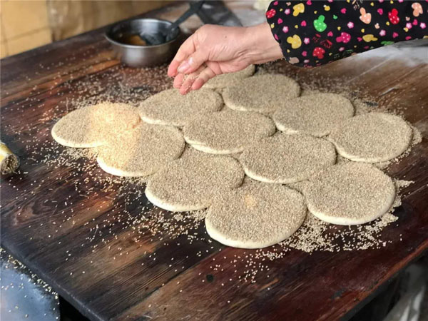 常州大麻糕已經(jīng)有150多年的歷史,常武各地的麻糕師傅、麻糕店數(shù)不勝數(shù),但今天小編要帶大家去的是一家隱藏在背街小巷里,至今仍保持著傳統(tǒng)手工制法的麻糕店。 沈正昌麻糕店位于遙觀鎮(zhèn)東街、國寧寺旁,雖然店門口連個招牌都沒有,卻不妨礙四面八方的食客慕名而來,大伙看中的正是這些純手工制作,原汁原味的大麻糕。如今的店主沈國平已經(jīng)是沈家第四代做麻糕的傳人了。 秉承著爺爺那輩傳下來的手藝,他們制作的麻糕塊大實(shí)誠,用料講究,口感酥軟,深受四周鄉(xiāng)鄰的歡迎!拔覀冞是老法,酥是生板油身擦的,餡里也是生板油摻糖,是真的綠色產(chǎn)品,沒有添加劑,沒有防腐劑,也不用甜蜜素,都是真家伙。” 每天凌晨一兩點(diǎn)鐘,沈國平就要去采買當(dāng)天最新鮮的豬板油,回來清理干凈,和上面粉攪拌均勻,制成面團(tuán)。麻糕的制作主要由沈國平妻子和兩個姊妹來完成。揉面、搓胚子、配油酥,按餡心、搟均勻,整個過程行云流水,連貫無比。 當(dāng)爐火燒得正旺,溫度能高達(dá)近300度,沈國平就上場了,赤手空拳,一撈一貼,一秒鐘的功夫,就把麻糕貼到了桶壁上。不過幾分鐘的功夫,麻糕就出爐了。經(jīng)過炭火爐子烤出來的,比一些電烤爐烤出的更香、更脆。