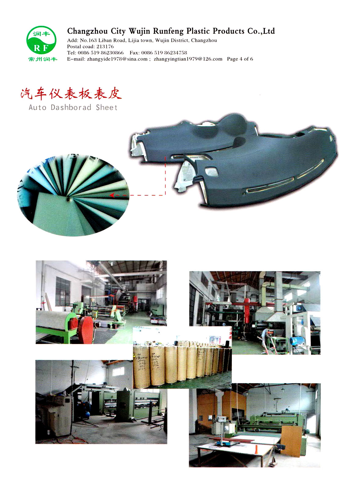 常州市武進(jìn)潤(rùn)豐塑料制品有限公司地處風(fēng)景美麗經(jīng)濟(jì)發(fā)達(dá)的長(zhǎng)江三角洲常州市東郊禮嘉鎮(zhèn),公司占地面積約8000平方米,且地理位置優(yōu)越,是中外客商常涉之地。 本公司專業(yè)生產(chǎn)汽車儀板軟化表皮、PVC門護(hù)板表皮、PVC復(fù)合制品、壓延薄膜制品,(塑料制品除醫(yī)用塑料制品),車輛零部件,機(jī)械電器零部件,電子元件,沖壓件制造,加工無(wú)妨制品,玻纖氈(GFP板),麻氈板等。本公司的產(chǎn)品在國(guó)內(nèi)一線乘用車上廣泛使用。產(chǎn)品通過國(guó)家汽車質(zhì)量監(jiān)督檢驗(yàn)中心檢測(cè),并取得了各種證書,如亞瑟國(guó)際認(rèn)證;ISO/TS1694:2009等。 本公司技術(shù)力量雄厚,生產(chǎn)設(shè)備先進(jìn)。多年來(lái),建立了較完善的質(zhì)量管理體系,以先進(jìn)的檢測(cè)技術(shù),優(yōu)質(zhì)的服務(wù)態(tài)度,向客戶提供最優(yōu)秀的產(chǎn)品,在同行中享有良好的聲譽(yù)。 歡迎新老客戶來(lái)公司指導(dǎo),洽談,合作。