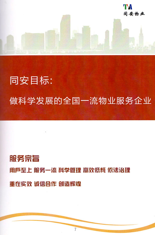 公司始終以“打造中國最值得信賴和最值得尊重的物業(yè)管理服務(wù)集成商”為愿景自我鞭策,不斷前行。同安物業(yè)以客戶滿意為終極目標(biāo),不斷加強(qiáng)”崗位資格認(rèn)證能力,人才招聘與職業(yè)化培訓(xùn)能力,產(chǎn)品策劃與管理設(shè)計(jì)能力,品質(zhì)監(jiān)督與管控能力,技術(shù)更新與運(yùn)營優(yōu)化力“五大專業(yè)能力的培養(yǎng)和提升,實(shí)現(xiàn)“精品化管理,專業(yè)化服務(wù)”。