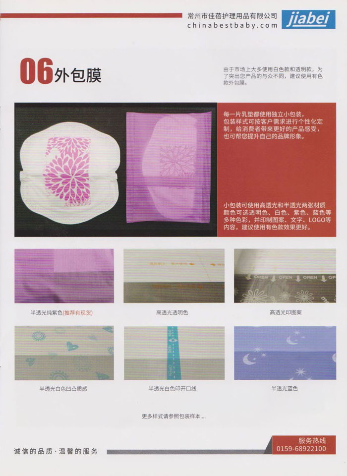 常州市佳蓓護理用品有限公司是一家專業(yè)從事開發(fā)、生產、銷售并具備自營出口的外向型企業(yè),主要生產“一次性防溢乳墊“,以質量穩(wěn)定,柔軟親膚而深受客戶和消費者青睞。本公司產品從生產到包裝成品嚴格執(zhí)行無菌生產標準化流程,并和設備生產廠家合作開發(fā)了兩條從進料、生產、檢測、滅菌、成品包裝的無菌生產線,從而實現(xiàn)了真正意義上的無菌生產標準化。