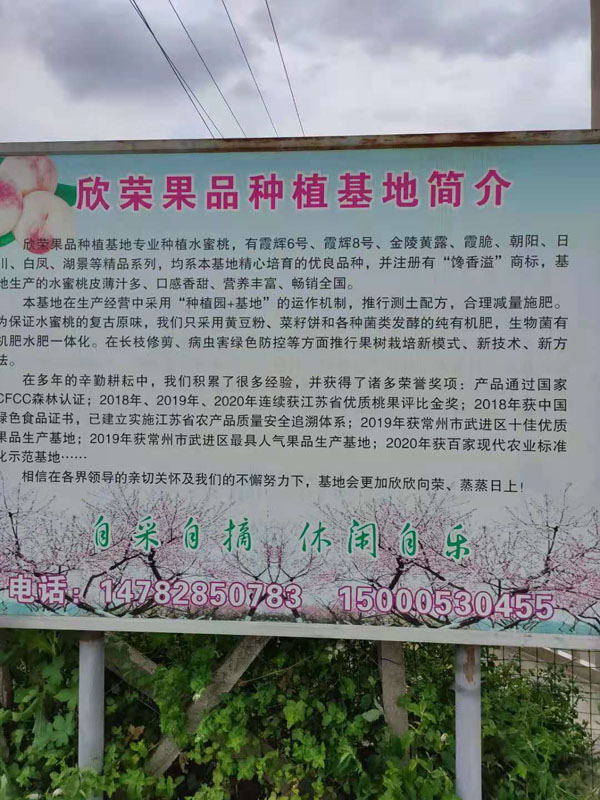 欣榮果品種植基地專業(yè)種植水蜜桃,有霞輝6號、霞輝8號、金陵黃露、霞脆、朝陽、日川、自鳳、湖景等精品系列,均系本基地精心培育的優(yōu)良品種,并注冊有“饞香溢”商標,基地也生產的水蜜桃皮薄汁多、口感香甜、營養(yǎng)豐富、暢銷全國。 本基地在生產經營中采用“種植園+基地”的運作機制,推行測土配方,合理減量施肥。保證水蜜桃的復古原昧。我們只采用黃豆粉、菜籽餅和各種菌類發(fā)酵的純有機肥,生物菌有機肥水肥一體化。在長枝修剪、病蟲害綠色防控等方面推行果樹栽培新模式、新技術、新方去。 在多年的辛勤耕耘中,我們積累了很多經驗,并獲得了諸多榮譽獎項:產品通過國家CFCC森林認證;2018年、2019年、2020年連續(xù)獲江蘇省優(yōu)質桃果評比金獎;2018年獲中國綠色食品證書,已建立實施江蘇省農產品質量安全追溯體系;2019年獲常州市武進區(qū)十佳優(yōu)質果品生產基地;2019年獲常州市武進區(qū)最具人氣果品生產基地;2020年獲百家現(xiàn)代農業(yè)標準化示范基地…… 相信在各界領導的親切關懷及我們的不懈努力下,基地會更加欣欣向榮、蒸蒸日上!