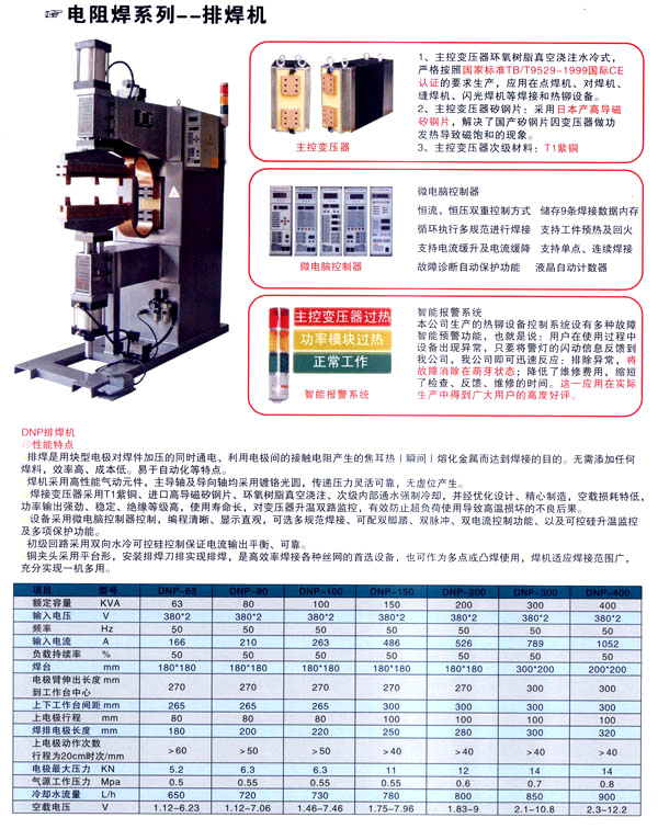 焊割主要產(chǎn)品有:點焊機系列、縫焊機系列、環(huán)縫焊接機床、凸焊機、排焊機、儲能焊機、對焊機、龍門焊機、太陽能焊接設(shè)備和機器人焊接系統(tǒng)及外圍設(shè)備等;并為用戶設(shè)計制造專用焊接設(shè)備。