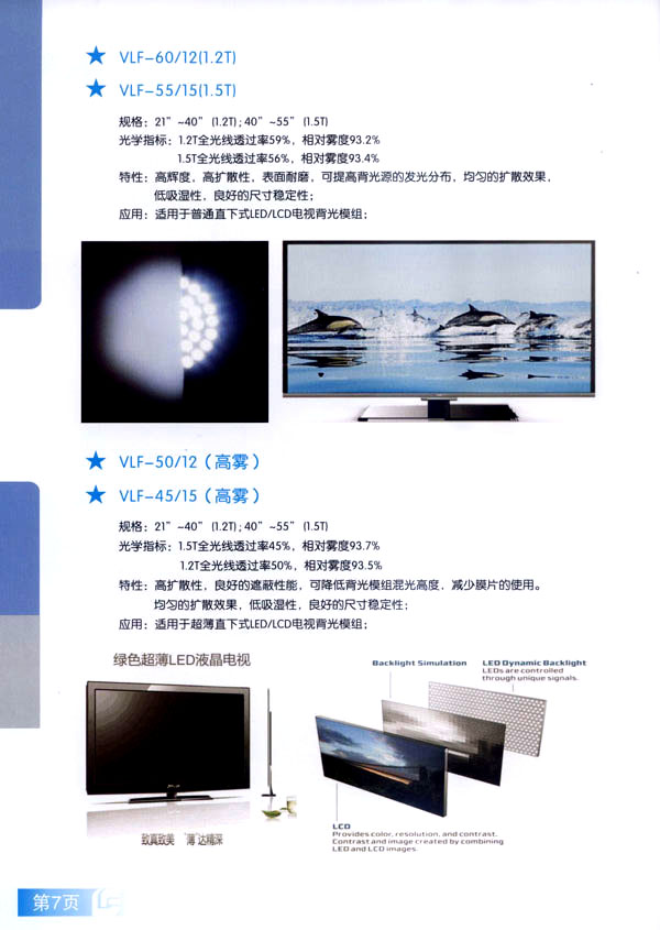 聯(lián)豐生產(chǎn)的VFP系列PS擴(kuò)散板能廣泛應(yīng)用于直下式LED,CCFL液晶電視背光模組。產(chǎn)品在很多國(guó)內(nèi)一線TV的背光模組上使用。產(chǎn)品具有高輝度,高擴(kuò)散性,特別適用于超薄背光模組的擴(kuò)散部件,能有效降低成本,節(jié)約能源。