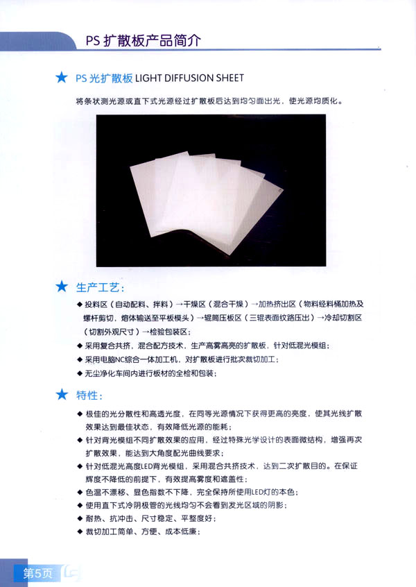由于LED照明行業(yè)的興起,公司特別針對(duì)于LED面板燈和筒燈開(kāi)發(fā)的LFP系列擴(kuò)散板,在滿足透光率條件下,能最大限度提高光通量,從而增加燈具的光效,受到廣大客戶的好評(píng)。