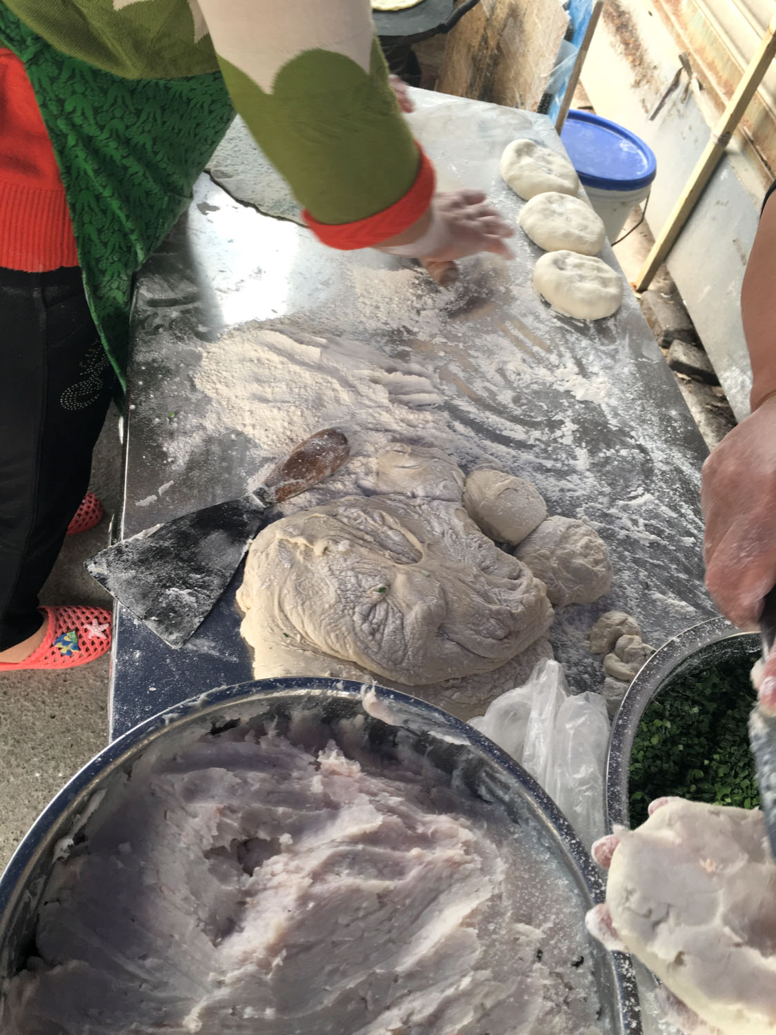 魁元面館,橫山橋江南路,沿街的店鋪。老板娘徐文霞,從公婆手里接過這個店面已有20多年。最具特色的菜品是肉圓跟大排。每天凌晨3點就要起來做準備,菜都是現(xiàn)燒現(xiàn)賣。 特色小菜: 肉圓:有人特意遠道而來打包走 大排面:每天能賣出100來塊大排 大腸 雞蛋:每天煎的雞蛋就差不多300來個 小餛飩、大餛飩 限時供應(yīng): 咸鴨蛋、肉粽、蛋黃粽:每天都要包,放爐子燒,在端午前后供應(yīng),很好吃。每天都有人打包幾個咸鴨蛋或者粽子拿回家,送人 油酥餅(圖3-4)、糍團餅(圖5-6)、韭菜餅(圖7-8) 油酥餅每天晚上做,涼了更好吃,更酥更脆,里面都是很香的黑芝麻;糍團餅,每天中午擺攤熱了煎鍋開始煎,糯米做成,用菜籽油煎至金黃,餡兒是黑芝麻瓜子仁;韭菜餅是最受歡迎的,每天都有好多人排隊來買。供應(yīng)時間:每年的4月份到11月份 下午1點到5點半。