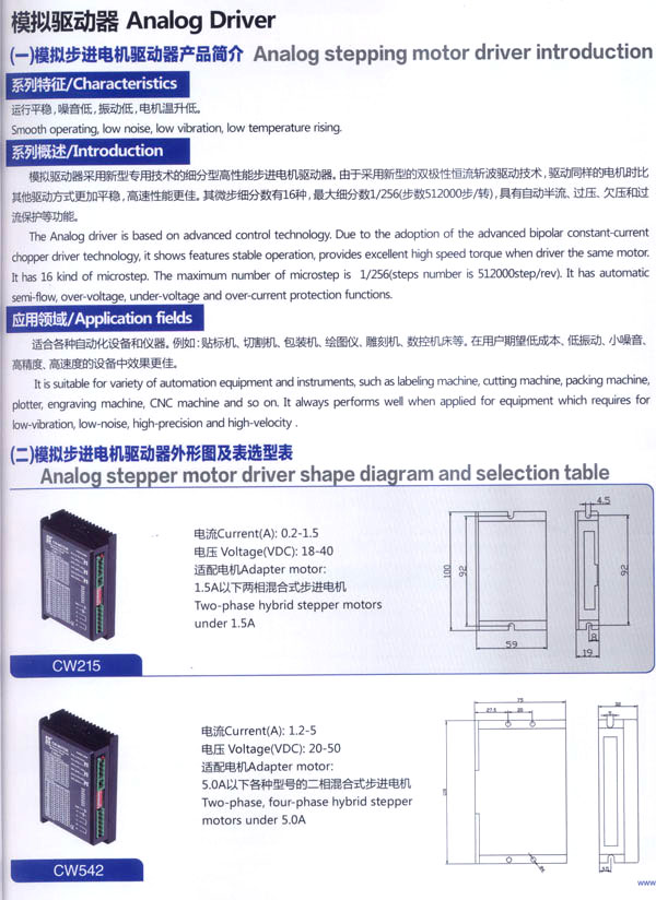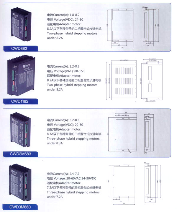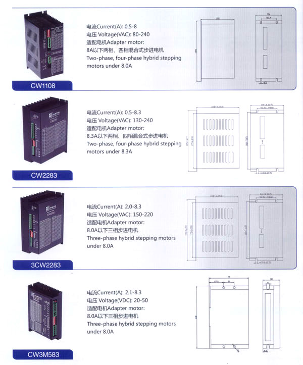 常州創(chuàng)偉電機電器有限公司成立于1995年,是一家專業(yè)從事步進電機及驅(qū)動控制生產(chǎn)、研發(fā)的企業(yè)。現(xiàn)已擁有一批富有經(jīng)驗的生產(chǎn)和開發(fā)隊伍。企業(yè)在多年的發(fā)展過程中,為全國各地各行業(yè)提供了大量質(zhì)優(yōu)價廉的步進電機及控制產(chǎn)品。應(yīng)用領(lǐng)域涉及機器人、音樂噴泉、數(shù)控機床設(shè)備、工業(yè)電子自動化設(shè)備、醫(yī)療器械、廣告器材、舞臺燈光設(shè)備、印刷設(shè)備、紡織機械、計算機外部應(yīng)用設(shè)備等等。 公司產(chǎn)品先后通過ISO9001質(zhì)量管理體系認證,RoHS認證,CE認證。公司現(xiàn)擁有全自動繞線機、調(diào)壓式充磁機、萬能外圓磨床、數(shù)控機床等設(shè)備50余臺,固定資產(chǎn)3000萬元,員工總數(shù)200余人,其中技術(shù)人員25人。年生產(chǎn)各類電機100萬臺。依靠齊全的檢測設(shè)備、完善的檢測手段、嚴(yán)格的質(zhì)量標(biāo)準(zhǔn),我們一直致力于提高產(chǎn)品的質(zhì)量和性能。對于每一個客戶我們都提供自始自終的技術(shù)服務(wù)和產(chǎn)品售后服務(wù)。 我公司的主要產(chǎn)品有20BH系列、28BH系列、35BH系列、39BH系列、42BH系列、42BHH系列、57BH圓形系列、57BHH方形系列、60BHH方形系列、86BH圓形系列、86BHH方形系列,以及110BHH系列的四相(二相)混合式步進電。CW60BL、CW63BL、CW70BL、CW92BL系列無刷電機也相繼上市。另外步進電機驅(qū)動器CW215、CW230、CW5045、CW8060、CW6060AC、CW1108以及全新數(shù)字式驅(qū)動器CWD230、CWD556、CWD860H、CW2M2208、CW3M2208和閉環(huán)電機驅(qū)動器CWDS556,CWDS660,CWDS860H,CWDS880L,CWDS1108,CWDS2206等系列也暢銷全球。另外本公司也可對外承接各種步進電機及相關(guān)工控系統(tǒng)的應(yīng)用系統(tǒng)工程。 熱忱歡迎國內(nèi)外客商前來洽談及合作。