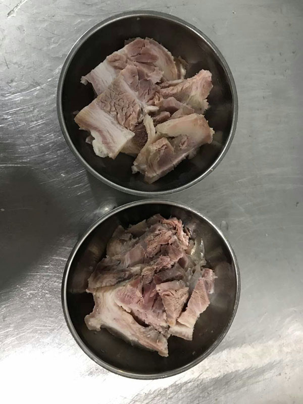 10斤豬骨頭熬制而成,湯色清澈而味道濃郁;紅湯以骨頭湯作底湯,加入茴香、甘草、草果等20多種中草藥,以及糖、醬油等調(diào)味品,鮮而不腥,散發(fā)出陣陣香味。