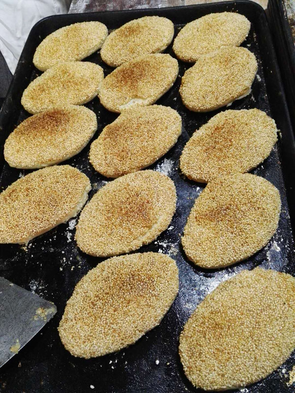 常州大麻糕已經(jīng)有150多年的歷史,常武各地的麻糕師傅、麻糕店數(shù)不勝數(shù),但今天小編要帶大家去的是一家隱藏在背街小巷里,至今仍保持著傳統(tǒng)手工制法的麻糕店。 沈正昌麻糕店位于遙觀鎮(zhèn)東街、國寧寺旁,雖然店門口連個招牌都沒有,卻不妨礙四面八方的食客慕名而來,大伙看中的正是這些純手工制作,原汁原味的大麻糕。如今的店主沈國平已經(jīng)是沈家第四代做麻糕的傳人了。 秉承著爺爺那輩傳下來的手藝,他們制作的麻糕塊大實誠,用料講究,口感酥軟,深受四周鄉(xiāng)鄰的歡迎!拔覀冞是老法,酥是生板油身擦的,餡里也是生板油摻糖,是真的綠色產品,沒有添加劑,沒有防腐劑,也不用甜蜜素,都是真家伙! 每天凌晨一兩點鐘,沈國平就要去采買當天最新鮮的豬板油,回來清理干凈,和上面粉攪拌均勻,制成面團。麻糕的制作主要由沈國平妻子和兩個姊妹來完成。揉面、搓胚子、配油酥,按餡心、搟均勻,整個過程行云流水,連貫無比。 當爐火燒得正旺,溫度能高達近300度,沈國平就上場了,赤手空拳,一撈一貼,一秒鐘的功夫,就把麻糕貼到了桶壁上。不過幾分鐘的功夫,麻糕就出爐了。經(jīng)過炭火爐子烤出來的,比一些電烤爐烤出的更香、更脆。