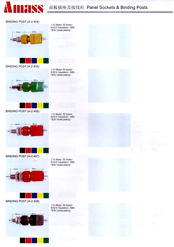 本公司專業(yè)生產(chǎn)各類香蕉插頭,香蕉插座,接線柱,電瓶夾,鱷魚夾,測試導線,測試筆等。產(chǎn)品分2mm/2.5mm/3mm/3.5mm/4mm五大系列,百余種款式, 各種香蕉插廣泛用于儀器、儀表、電力測試、教學、玩具,視聽設備、醫(yī)療儀器,保健產(chǎn)品等領域。公司技術力量雄厚,生產(chǎn)工藝先進,產(chǎn)品遠銷港、臺、歐美,并與飛利浦等國際品牌配套。公司本著精益求精的理念,歡迎新老客戶光臨。 我們擁有資深的工程師和豐富的電子產(chǎn)品銷售經(jīng)驗,專業(yè)生產(chǎn)各類電子接插件產(chǎn)品。 香蕉插頭,香蕉插座,電瓶夾,鱷魚夾等品種齊全、 質(zhì)量可靠,致力服務于通訊、數(shù)據(jù)通信、消費類電子產(chǎn)品、計算機和計算機外圍設備以及工業(yè)應用等領域,能給客戶提供全面采購解決方案。 我們秉承穩(wěn)健作風、誠實經(jīng)營、合理價格、完善服務的宗旨,在全體客戶的支持下,公司不斷創(chuàng)新進取,業(yè)績蒸蒸日上,已與數(shù)十家電子零件制造商及其分支機構(gòu)建立密切合作關系,在國內(nèi)擁有數(shù)百家固定客戶。