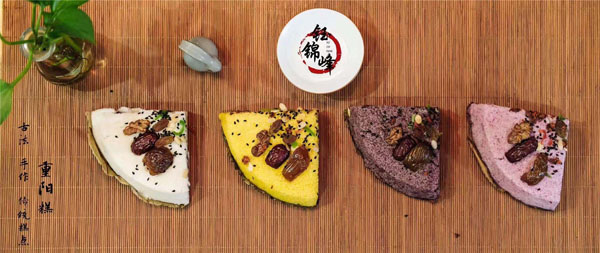 腳踏糕本名“年糕”,按常州周邊地區(qū)的風(fēng)俗習(xí)慣,在春季前夕,各家各戶(hù)都要蒸年糕,吃年糕!案狻敝C音“高”,過(guò)年吃年糕被賜予“年年高”,一年高一年,鋒吉祥之意,表達(dá)這人們對(duì)未來(lái)美好生活的憧憬和良好的祝愿。今天小編要帶大家的就是一家至今保持著傳統(tǒng)手工制作的鈺鋒糕點(diǎn)坊。 鈺鋒糕點(diǎn)坊位于常州鄭陸鎮(zhèn)三皇廟范家莊,一個(gè)比較偏僻的村莊,雖然這家作坊不大,但香糯絲滑,軟糯適中,韌勁十足的腳踏糕吸引了無(wú)數(shù)的食客。制作一條腳踏糕要從淘米,浸泡,碾粉,鋪粉,一層一層的鋪下去,需要無(wú)數(shù)道制作工序,這些都是店主孫煥公公老周,憑著幾十年的經(jīng)驗(yàn),加上店主孫煥從不馬虎的決心! 這“腳踏”也并非赤腳上陣,而是把蒸好的糕倒入早以準(zhǔn)備好的框子里,用布包裹好,上面再用薄膜包好,再蓋上布,再換上專(zhuān)門(mén)腳踏的布鞋,踩的時(shí)候要?jiǎng)蚍Q(chēng),左右腳要配合好,不然糕會(huì)高高低低,不平整,最后再拿蠟燭線(xiàn)拆成一條小長(zhǎng)條,再拿帶包裝好,如此又香又糯的腳踏糕就大功告成了。 店主孫煥為了讓更多的人認(rèn)識(shí)和了解常州腳踏糕的傳統(tǒng)文化和美食,她在傳統(tǒng)工藝中增加了適合現(xiàn)代文化的多種口味,她在糕里加入南瓜,紫薯,老紅糖,大麥汁,血糯米,核桃,葡萄干,紅棗等食材,做出五顏六色,純天然的口味,深受食客們的喜愛(ài),不管是送人還是自己吃都非常新穎。 (重陽(yáng)糕)重陽(yáng)糕的由來(lái),九九重陽(yáng),九是陽(yáng)數(shù),也是陽(yáng)數(shù)中最大的數(shù),九月初九,兩九相重,為之重陽(yáng),古人有重陽(yáng)登高的習(xí)俗。高于糕同意,寓意人活九十九,生活步步高,秋景勝春光,夕陽(yáng)無(wú)限好。夕陽(yáng)紅成了老人對(duì)自己美好的祝愿和希望,所以從某種意義上來(lái)講它“祝壽糕”“長(zhǎng)壽糕”重陽(yáng)糕在常州地區(qū)是家喻戶(hù)曉的,下面小編帶你去一家至今保持傳統(tǒng)手工制作的鈺鋒糕點(diǎn)坊看一下吧。鈺鋒糕點(diǎn)坊位于常州市天寧區(qū)鄭陸鎮(zhèn)三皇廟范家莊,偏僻的小村莊,雖然有點(diǎn)偏僻,但是每到重陽(yáng)節(jié)到來(lái),每天還是有很多食客來(lái)訂購(gòu)和購(gòu)買(mǎi)店主孫煥做的多種口味的重陽(yáng)糕。要想做出松軟香糯的重陽(yáng)糕,原材料和糯米和梗米的配比也很重要,調(diào)整好比例開(kāi)始淘米,浸泡,釓粉,放入糖攪拌,篩粉,糕底部放上荷葉,中間的餡心都是孫煥自己熬制,口感,香糯松軟,店主孫煥為了吸引更多現(xiàn)代年輕人,她在粉里加入南瓜,紫薯,紅糖,血糯等,色彩搭配很出跳,吸引來(lái)了很多食客,孫煥2019年開(kāi)始自愿捐贈(zèng)重陽(yáng)糕給敬老院,她說(shuō)這樣的公益活動(dòng)自己很喜歡,雖然金額不大,缺表達(dá)了她的一份心意,并稱(chēng)這樣的公益活動(dòng)她每年都會(huì)做。