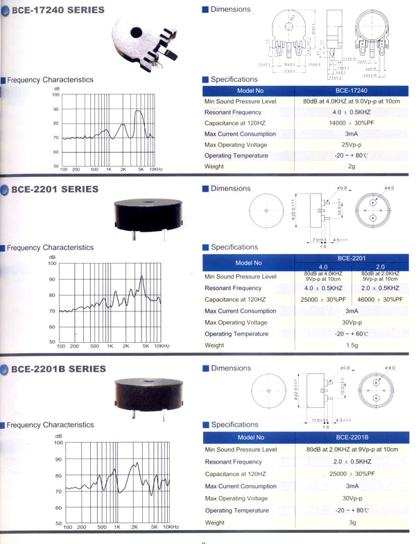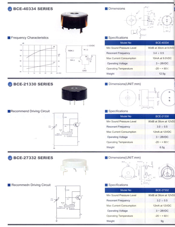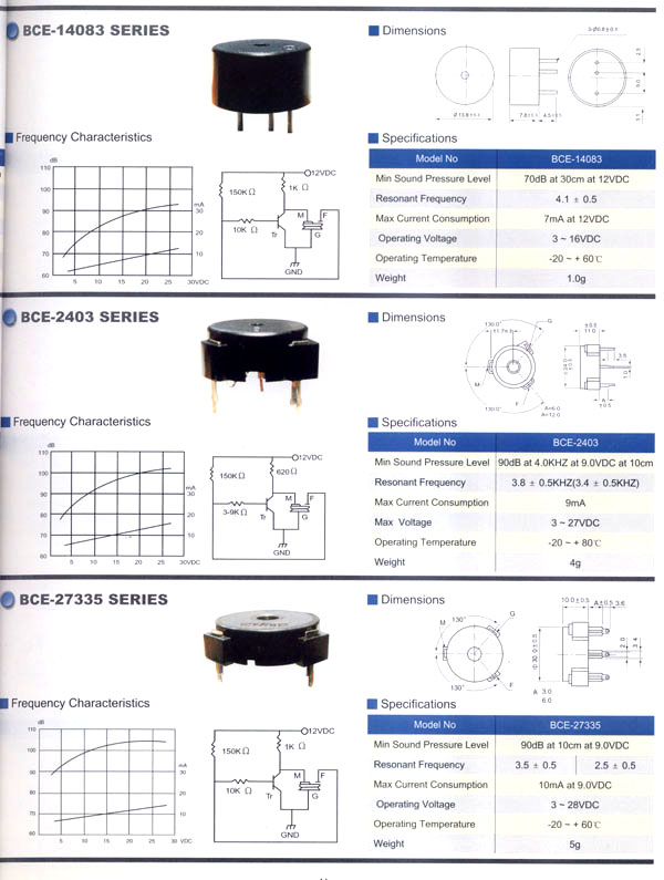 本公司生產(chǎn)的蜂鳴器結(jié)構(gòu)緊密,材質(zhì)輕,功耗低,質(zhì)量可靠,使用方便,價格合理,采用最新技術(shù)電子元件。廣泛應(yīng)用于打印機、電話、定時器、尋呼機、洗衣機、取款機、報警器、電腦終端機、復(fù)印機、電唱機、汽車及摩托車電子設(shè)備、空調(diào)設(shè)備、萬用表、遙控裝置、各種安全裝置以及便攜或電池式迷你型裝置。