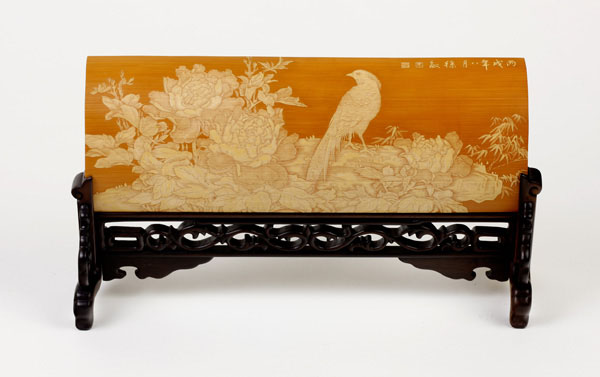 徐敏,一九七四年生于江蘇常州,擅長(zhǎng)山水油畫(huà)。師從竹刻家范遙青研習(xí)竹刻至今有二十余載。其作品受到竹刻權(quán)威鑒賞家王世襄認(rèn)可,并親筆為她題字褒獎(jiǎng),F(xiàn)為常州市非物質(zhì)文化遺產(chǎn)傳承人。