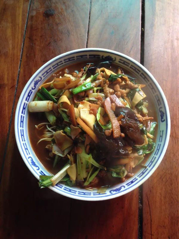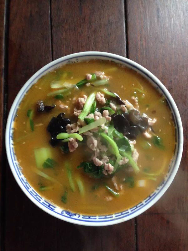 武進(jìn)區(qū)青城面館經(jīng)營(yíng)面積280平方米左右,主要特色是現(xiàn)炒肉絲,素菜蓋澆面,面館創(chuàng)始人今年63歲的王蘭珍,她對(duì)美食有著高于常人的悟性。她開過(guò)饅頭店,開過(guò)小飯館,承包過(guò)食堂,燒菜、取料樣樣在行,吃過(guò)的人常常贊不絕口。 20世紀(jì)初,在跟德興面館的老師傅學(xué)了做面手藝后,王蘭珍萌生了開一家面館的想法,除了可以養(yǎng)家糊口,最重要的是想讓更多人嘗嘗自己的手藝。于是,她在自己的住處擺起了幾張桌椅,面館就算正式營(yíng)業(yè)了。因?yàn)榧易∏喑菢,王蘭珍干脆取名“青城面館”。 “從早上5點(diǎn)多開始營(yíng)業(yè),到下午1點(diǎn)多打烊,一天至少要賣掉300多碗面,用掉近160斤面粉!睘楹吻喑敲骛^的面條如此受歡迎,兒媳婦陸偉紅說(shuō)秘訣在于湯頭和澆頭。湯頭分白湯和紅湯,白湯是由10斤豬骨頭熬制而成,湯色清澈而味道濃郁;紅湯以骨頭湯作底湯,加入茴香、甘草、草果等20多種中草藥,以及糖、醬油等調(diào)味品,鮮而不腥,散發(fā)出陣陣香味。 和一般面館事先燒制好澆頭,放在盆里供客人選擇不同,青城面館的澆頭都是一份份現(xiàn)炒的,特別講究食材的新鮮。就拿暢銷的肉絲蔬菜紅湯面來(lái)說(shuō),要先起猛火,把肉絲、木耳、蘑菇、青菜等食材放一起煸炒至香,然后澆在撈起的面條上。一碗面出來(lái),現(xiàn)炒的澆頭與面條融合,味道香郁至極。 遙觀人的早晨,醒得有些早。對(duì)很多遙觀人來(lái)說(shuō),美好的一天是從青城面館開始的。那一碗碗現(xiàn)炒的蓋澆面,筋道爽滑、醬香味濃,溫存著他們的胃與記憶,帶來(lái)刻進(jìn)骨子里的家鄉(xiāng)味道。