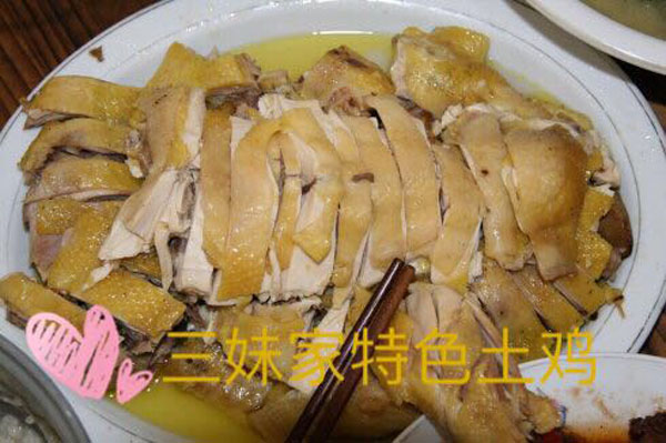 橫林有個地兒叫楊歧村,有句老話叫“上不靠橫林,下不靠洛社”,說的就是那里。 楊歧村過去幾十米就是無錫地界,今天小編推薦的土菜館「三妹農(nóng)家小吃」就在那里。 當小編一路七拐八拐,中午11點半到達那里時,門面雖然很簡陋,但店門口已然停了好多輛車。剛進入店門,就發(fā)現(xiàn)這家店人氣好旺,十幾桌基本都坐滿了。(所以說,人不可貌相,餐館也是如此) "三妹,三妹。⒌昀锟腿私袉韭暡唤^于耳,原來老板娘叫楊三妹啊。你們忙,我們先隨便看看。 過大廳到后堂就是冷菜間,里面有白切草雞、鹵豬干、拌馬蘭等十幾種土菜,尤其那草雞濃郁的香味,讓小編肚子叫得咕咕響。 往前是活貨區(qū),各種鮮魚活蝦一格一格區(qū)分養(yǎng)著,再里面是開放式廚房,每個客人都可以看到,選用的放心食材和調(diào)料。  吃貨老板娘,楊三妹,三妹,從小到大一直有個嗜好,就是愛美味,不光喜歡吃,還喜歡鉆研做。2010年,「三妹小吃」開張,因為獨具特色,在楊歧這個小村一炮而紅。要說楊三妹最拿手的菜是什么,當然是酒糟扣肉。 糟本來就是一種做米酒留下來后,用來吊燒酒的。但是我們常州人很聰明,把糟和肉放在一起,做成一道美味菜,叫酒糟扣肉。 楊三妹的酒糟扣肉之所以有名,得益于母親的悉心傳授。記憶里小辰光,她母親做的扣肉總比別人家的香!冈恪,釀完酒后留下的糟,會與炒熟的新糯米,拌和在一起,陳一年。「肉」,選擇本地養(yǎng)殖的良種豬,沒有臊味。 長大后,她把記憶里的美味延續(xù)了下來。精益求精的她,對扣肉的制作過程要求很嚴格。別人家制作都是把肉直接切大塊,排碗,熬槽,蒸爛。三妹說,這樣烹制,肉汁的鮮美會流失很多,口感減分不少。她的做法是精選新鮮豬五花,整大塊清蒸,保留肉汁的鮮美,之后再切塊紅燒,排碗,熬糟,澆蓋,再蒸。 三妹酒糟扣肉,出鍋后,色澤紅潤,味道鮮美。既有酒的香味,又有肉的鮮美,而且經(jīng)過蒸煮后,油脂都出來了,爽口不油膩。