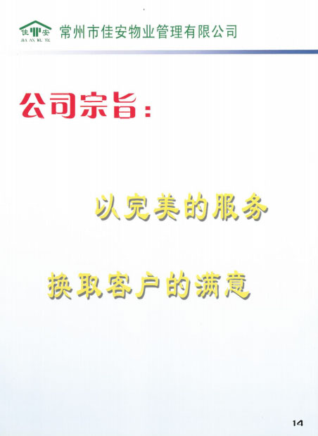 佳安物業(yè)管理有限公司位于常州市新北區(qū)薛家鎮(zhèn),2005年由薛家鎮(zhèn)黨委政府注冊成立,注冊資金50萬元,屬于三級資質(zhì)企業(yè)。成立之初,佳安物業(yè)作為政屬事業(yè)單位,主要負責管理薛家鎮(zhèn)順園新村安置小區(qū)。隨著薛家鎮(zhèn)經(jīng)濟和人口的發(fā)展,為主動適應(yīng)經(jīng)濟發(fā)展新常態(tài),全面深化物業(yè)綜合改革,打造具有薛家特色的物業(yè)公司,佳安物業(yè)由政府下屬的事業(yè)單位正式轉(zhuǎn)變?yōu)楠毩⑦\營的企業(yè),并增資到1000萬元。 2017年6月,公司通過審核被評為“AAA”級信用企業(yè),同月,公司實施ISO9001質(zhì)量管理體系標準,并于8月通過質(zhì)量體系認證審核。2018年8月,公司通過了ISO14001環(huán)境管理體系、ohsas18001職業(yè)健康安全管理體系的認證審核。 目前,公司主要承接小區(qū)物業(yè)服務(wù)及廠區(qū)外派保安服務(wù)、保潔服務(wù)等。現(xiàn)公司為薛家鎮(zhèn)順園一村至順園九村安置小區(qū)及奧林匹克花園、怡景名園2處商業(yè)小區(qū)提供物業(yè)服務(wù);為江南農(nóng)村商業(yè)銀行新北區(qū)所有支行、中車鐵馬、投資服務(wù)中心、華夏藝博園、薛家幼兒園、薛家小學及薛家中學等單位提供外派保安服務(wù);為薛家鎮(zhèn)中心廣場及松林別墅提供保安服務(wù);為華夏藝博園及投資服務(wù)中心提供保潔服務(wù)等。 在這十余年中,佳安物業(yè)與時俱進,銳意進取,為地方建設(shè)發(fā)展注入動力,為居民和企業(yè)安全保駕護航,尤其是在實踐中,我們積極探索,正逐步摸索出一條適合薛家城鄉(xiāng)一體化建設(shè)的社區(qū)物業(yè)管理的新路。希望通過今天的分享,和大家一起探討我們在“管辦分離”等方面的實踐經(jīng)驗,并在此基礎(chǔ)上為薛家的可持續(xù)發(fā)展提供可借鑒、推廣的新型物業(yè)管理之路。
