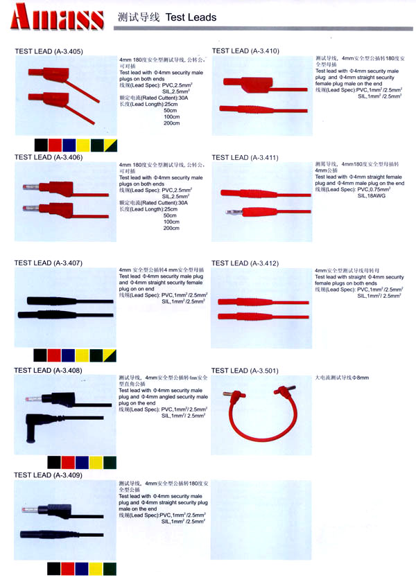 本公司專業(yè)生產(chǎn)各類香蕉插頭,香蕉插座,接線柱,電瓶夾,鱷魚夾,測試導(dǎo)線,測試筆等。產(chǎn)品分2mm/2.5mm/3mm/3.5mm/4mm五大系列,百余種款式, 各種香蕉插廣泛用于儀器、儀表、電力測試、教學(xué)、玩具,視聽設(shè)備、醫(yī)療儀器,保健產(chǎn)品等領(lǐng)域。公司技術(shù)力量雄厚,生產(chǎn)工藝先進,產(chǎn)品遠銷港、臺、歐美,并與飛利浦等國際品牌配套。公司本著精益求精的理念,歡迎新老客戶光臨。 我們擁有資深的工程師和豐富的電子產(chǎn)品銷售經(jīng)驗,專業(yè)生產(chǎn)各類電子接插件產(chǎn)品。 香蕉插頭,香蕉插座,電瓶夾,鱷魚夾等品種齊全、 質(zhì)量可靠,致力服務(wù)于通訊、數(shù)據(jù)通信、消費類電子產(chǎn)品、計算機和計算機外圍設(shè)備以及工業(yè)應(yīng)用等領(lǐng)域,能給客戶提供全面采購解決方案。 我們秉承穩(wěn)健作風(fēng)、誠實經(jīng)營、合理價格、完善服務(wù)的宗旨,在全體客戶的支持下,公司不斷創(chuàng)新進取,業(yè)績蒸蒸日上,已與數(shù)十家電子零件制造商及其分支機構(gòu)建立密切合作關(guān)系,在國內(nèi)擁有數(shù)百家固定客戶。