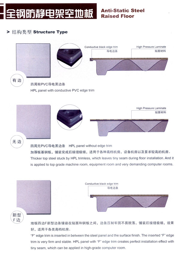常州市蘇杰機房地板有限公司是高架地板專業(yè)制造商,專業(yè)從事防靜電地板、OA網(wǎng)絡地板等各種系列高架地板的研發(fā)、制造和銷售,并提供各種機房地面和智能化辦公區(qū)地面的整體解決方案。 公司廠區(qū)面積30000平方米,擁有全鋼地板生產(chǎn)線兩條,木基、硫酸鈣基地板生產(chǎn)線各一條,年綜合產(chǎn)能100萬平方米。生產(chǎn)蘇杰牌防靜電地板系列和蘇杰牌網(wǎng)絡地板系列,主要產(chǎn)品有全鋼防靜電架空地板、全鋼OA網(wǎng)絡地板、瓷磚貼面防靜電地板、硫酸鈣防靜電地板、木基防靜電地板、鋁合金防靜電地板、防靜電通風地板等。 蘇杰人秉承“科技先導、市場為本、持續(xù)發(fā)展”的企業(yè)發(fā)展觀,堅持“以先進技術(shù)裝備為基礎,以現(xiàn)代化管理為依托,以專業(yè)化服務為保障”的宗旨,使公司不斷發(fā)展壯大成為現(xiàn)代化的企業(yè)。 蘇杰人堅持“嚴謹思考、嚴密操作、嚴格檢查、嚴肅驗證”的品質(zhì)理念和“以客戶為中心”的服務理念,始終致力于產(chǎn)品的技術(shù)創(chuàng)新和質(zhì)量創(chuàng)優(yōu),為用戶提供優(yōu)質(zhì)的產(chǎn)品、合理的價格和貼心的服務。 常州市蘇杰機房地板有限公司將不斷開發(fā)和制造一流的產(chǎn)品,吸引和培養(yǎng)一流的人才,提供和完善一流的服務,樹立和保持一流的形象,與時俱進,共謀發(fā)展。