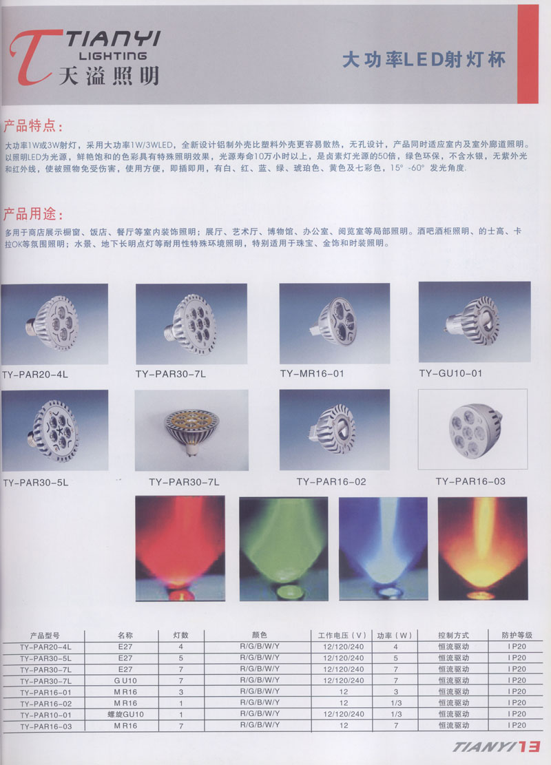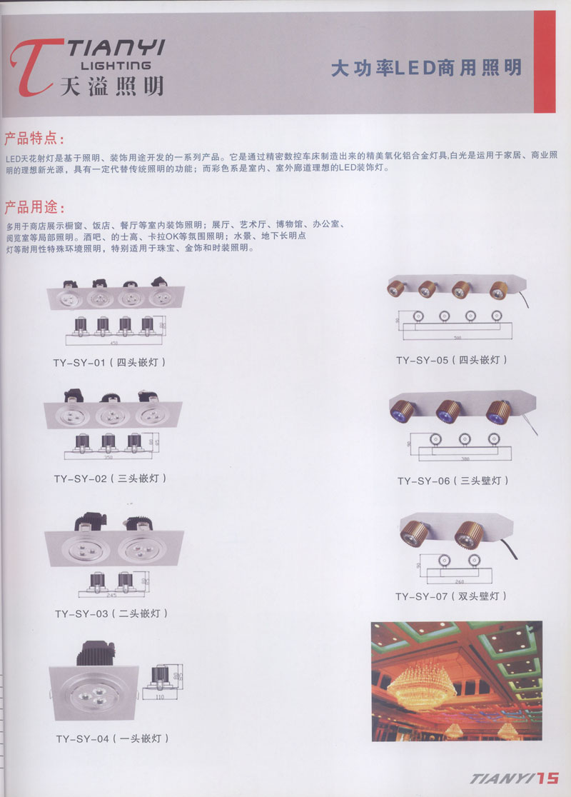 天溢照明是中國(guó)領(lǐng)先的專業(yè)從事LED廣告照明裝飾燈具設(shè)計(jì)、系統(tǒng)開發(fā)、燈具制造、工程服務(wù)一體的專業(yè)型公司,本公司產(chǎn)品已廣泛應(yīng)用于全國(guó)大多數(shù)城市夜景亮化景觀照明、酒店休閑娛樂夜場(chǎng)夢(mèng)幻燈光、戶內(nèi)外廣告宣傳、建筑及室內(nèi)照明以及家居裝飾等場(chǎng)合。 本公司產(chǎn)品涵蓋景觀裝飾照明、商用照明、居家照明、信息廣告顯示等領(lǐng)域,我們將性能可靠與適中價(jià)格的LED全系列產(chǎn)品帶到世界各個(gè)、角落。