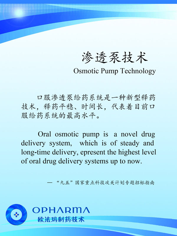 常州歐法瑪制藥技術有限公司位于長江三角洲黃金腹地——常州。地理位置優(yōu)越、交通便捷,由鐵路、公路、水路、民航形成了一張立體交叉的交通網絡。 公司創(chuàng)建于2013年,是一家集研發(fā)、生產和銷售為一體,專業(yè)從事高速激光打孔機、滲透泵制劑研發(fā)、生產和銷售。目前公司擁有員工20人,科技研發(fā)和技術人員占員工總數80%以上,其中本科以上學歷占80%以上。 公司始建以來,以前瞻的科學規(guī)劃,通過自主研發(fā),解決了高速激光打孔機諸多的世界難題,使之達到40片/秒以上且精確打孔的國際領先水平;同時開發(fā)廢片自動識別、剔除功能,以滿足客戶的實際所需。公司與瑞士等國家研究機構的科技合作,以高速激光打孔機為基礎,建設了滲透泵制劑研發(fā)和中試生產車間,開發(fā)了多種藥物的滲透泵制劑,形成了從關鍵設備研制,新制劑開發(fā)、工藝配套,到批量生產測試的滲透泵制劑開發(fā)全過程技術團隊和研究設施。公司瞄準現代新型釋藥系統(tǒng),吸收國內外高端人才,努力開拓控緩釋技術、靶向給藥技術及智能給藥技術。 2013年公司被評為黑馬大賽“創(chuàng)業(yè)組50強”、“領軍人才創(chuàng)業(yè)重點企業(yè)”;2014公司通過了IS09001-2008質量管理體系認證、CE認證、江蘇省質量信得過企業(yè)。