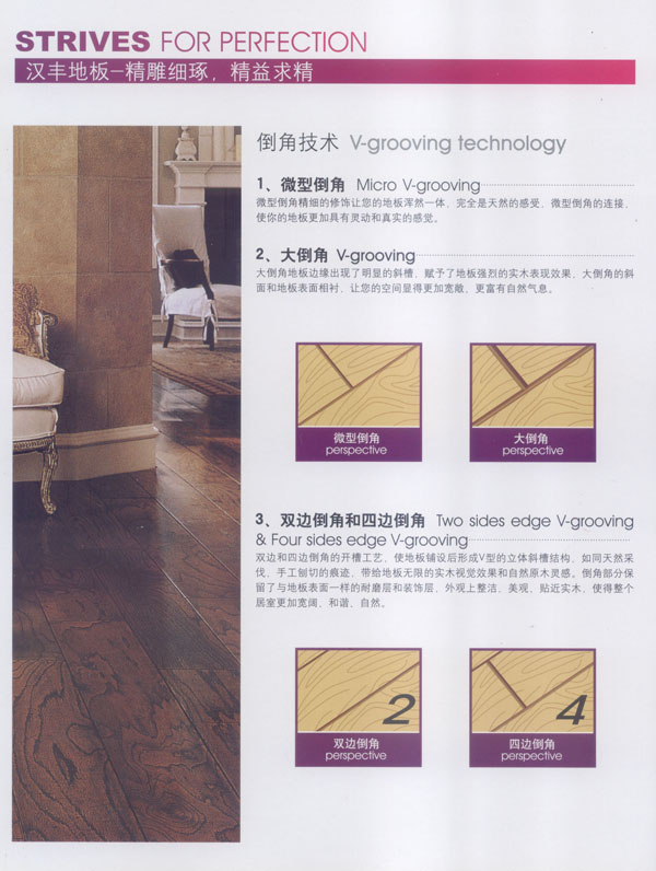 常州漢豐裝飾材料有限公司是一家涉及強化地板制造、屏風(fēng)鋁材生產(chǎn)、進出口貿(mào)易的大型公司。2001年公司投入重資.全面引進世界頂級一體化自動流水生產(chǎn)線和具有國際先進水準的德國權(quán)威木地板生產(chǎn)技術(shù),興建強化地板生產(chǎn)基地。多年以來.一直不斷加強生產(chǎn)設(shè)備、廠房基礎(chǔ)投入,目前公司年生產(chǎn)強化地板能力已經(jīng)達到了500萬平方米,步入國內(nèi)一流行列,具備了雄厚的國際競爭力。 漢豐地板以奉獻生活中最完美的地板為發(fā)展目標,時尚流行的設(shè)計風(fēng)格和多樣化的產(chǎn)品類型,贏得了市場的廣泛贊譽和肯定。產(chǎn)品嚴格按照歐洲標準檢測強化木地板的各項性能指標.達到百分百的國際技術(shù)標準,確保了每一塊地板都有著上乘品質(zhì),是綠色環(huán)保的好地板。并先后通過了Isc)9001國際質(zhì)量管理體系認證,IS014001國際環(huán)境管理體系認證.中國環(huán)境標志產(chǎn)品認證,深得用戶的一致好評,是寫字樓、商場、大型超市、學(xué)校、建筑樓宇、娛樂場所、家用私宅等鋪裝的首選地板。