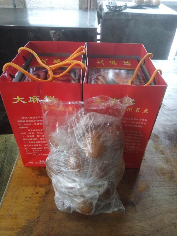 常州人夏亞寶的大麻糕技術是上世紀80年代更著新橋麻糕店的師傅周金生學的,1999年開店至今,在附近一帶做得小有名氣,向學校供應麻糕,整整6年。 “做大麻糕太辛苦,半夜爬起來準備熱爐子、和面、做餡,年輕人吃不了這苦,15年我都沒請人,和老婆一起打過來的!毕膩唽氈钢直凵系臓C傷的痕跡說,能堅持烤桶制作大麻糕的真心不多了。夏亞寶的烤桶是自制的,爐心常州買不到,他托人從無錫買來,15年前85元一個,前年漲到150元。“烤桶的爐心其實就是以前船上人家用的行爐”,去底后鑿個洞,然后外面加上隔熱材料,最后貼上鐵片”。 15年,這已經是第三只貼桶了。