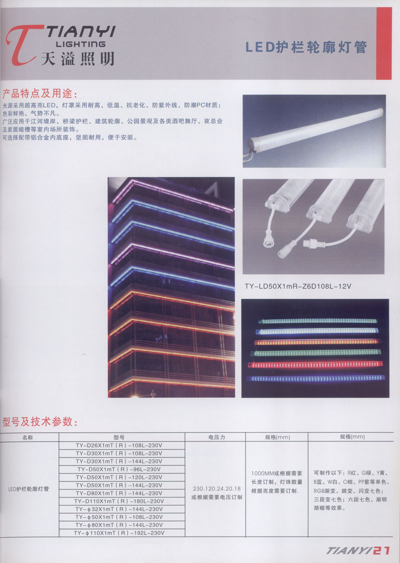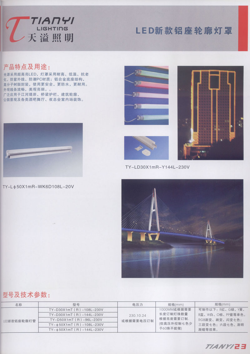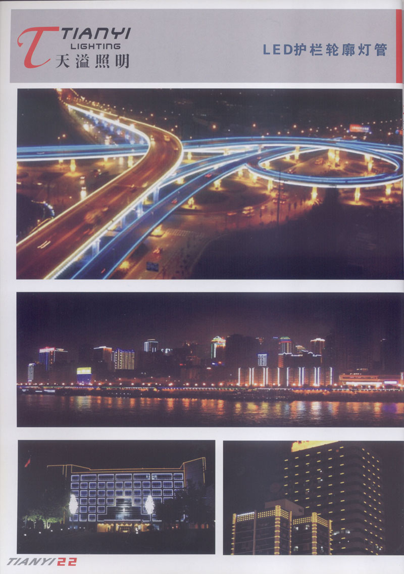 天溢照明是中國領先的專業(yè)從事LED廣告照明裝飾燈具設計、系統(tǒng)開發(fā)、燈具制造、工程服務一體的專業(yè)型公司,本公司產品已廣泛應用于全國大多數(shù)城市夜景亮化景觀照明、酒店休閑娛樂夜場夢幻燈光、戶內外廣告宣傳、建筑及室內照明以及家居裝飾等場合。 本公司產品涵蓋景觀裝飾照明、商用照明、居家照明、信息廣告顯示等領域,我們將性能可靠與適中價格的LED全系列產品帶到世界各個、角落。