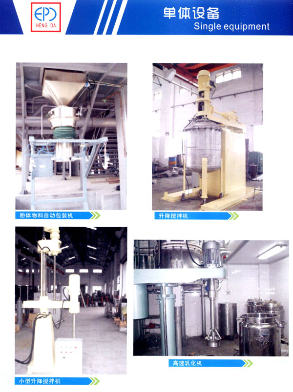 恒大公司掌握膠粘劑、樹脂、涂料和油墨等精細(xì)化工核心工藝技術(shù),擁有強(qiáng)大的化工成套生產(chǎn)設(shè)備提供能力和設(shè)備制造能力,能夠?yàn)榭蛻籼峁⿵恼麖S規(guī)劃設(shè)計(jì)、生產(chǎn)工藝流程設(shè)計(jì)、設(shè)備選型制造、管道設(shè)計(jì)安裝、自動(dòng)化控制系統(tǒng)開發(fā)調(diào)試以及整廠總承包交鑰匙工程服務(wù)。