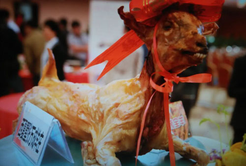 張萬成羊莊一家綜合性的公司,下設(shè)酒店,羊產(chǎn)品加工廠,屠宰廠,山羊養(yǎng)殖場(chǎng)。 酒店位于常州西夏墅浦河村,酒店羊宴規(guī)模占地30畝,酒店主要經(jīng)營(yíng)特色全羊宴。 一個(gè)祖?zhèn)鞯臍⒀虼髴,傳到張萬成,已是第六代了。張家的羊肉,素來以肉質(zhì)鮮美著稱,張萬成羊莊的主人張建龍是第六代傳人,張家的羊肉素來以肉質(zhì)鮮美著稱,從常州新北區(qū)沿黃河西路往機(jī)場(chǎng)方向直行至羅溪右轉(zhuǎn),穿過滬寧高速高架橋后不遠(yuǎn)處左拐沿翠屏湖路直走便能看到張萬成羊莊,酒店上下共有三層,2000多平方米經(jīng)營(yíng)面積,能同時(shí)接待近30桌客人的規(guī)模。有自己的羊圈和屠宰場(chǎng),每天殺20多只,菜式近100道。光是原料,就從原來羊身上的幾個(gè)主要部位,增加到除了羊牙齒以外的一只整羊全部可以入菜。烹制方式,更是在本土單一的燒、炒、煮基礎(chǔ)上,借鑒了東北、廣東、四川等地的烹羊特色,增加了蒸、涮、烤、煎、炸等多種方式。 注重原汁原味的冷菜 白切羊肉:精選羊頸部的活肉精制而成,肥瘦適中,絲毫沒有一般羊肉的膻味,沾少許張萬成羊莊秘制的醬料,口感非常好。 美味羊舌:張家的羊舌感覺是用特殊的醬料腌制過的,咸中略有甜味,口感鮮嫩卻肥而不膩,味道很香。 除了白切羊肉和羊舌以外還有許多冷菜品種,如羊肚、羊心、羊耳朵等。。 火候控制精準(zhǔn)的炒菜 炒羊肝:地道的農(nóng)家風(fēng)味,與大蒜葉同炒,蒜香濃郁,羊肝鮮嫩,這羊肝可是火候菜,羊肝鮮嫩與否不但取決于廚師對(duì)火候的掌握,還在于上桌放置時(shí)間的長(zhǎng)短,所以羊肝上桌后要盡快食用,看羊肝是否鮮嫩,只需用筷子挑起并輕輕抖動(dòng),有彈性者為佳。 美味羊?qū)殻阂跃曼S、鮑味菇爆炒的羊?qū),說是滋補(bǔ)壯陽的一道金貴菜,配料講究的燒菜系列 宮廷燴羊肚:較為金貴的菜品,配菜貴于主料,是以名貴的素鮑和新鮮的筍絲與羊肚同煮,口感濃郁,營(yíng)養(yǎng)豐富。 海參白燒羊肉:將取自7個(gè)月大羔羊身上的帶皮腿肉與海參一同煨煮,菜肴美容滋補(bǔ),兩種鮮味互相補(bǔ)益達(dá)到完美交融狀態(tài),口感甚佳。 魚羊鮮:新鮮的青魚配上羊肉,既有本地羊肉的肥嫩,又有魚肉的鮮香,鮮!鮮!古代人造字就是有道理!”店里可以根據(jù)客人的需要配以魚回魚、鯰魚、鱖魚等。 特色的羊宴點(diǎn)心 羊肉餛飩:羊莊老板自創(chuàng)的羊宴點(diǎn)心,看似普通的油燜跑蛋卻另有乾坤,將蛋掀開便能看見藏于其中的羊肉菜餡餛飩,菜和肉都是自家新鮮的原料,很好吃。 手工搟面:不知道是因?yàn)槊媸钦嬲檬止{制還是因?yàn)榧尤肓缩r味十足的羊湯,總之味道非常好,面勁道,湯也鮮美! 張萬成羊莊的羊湯也是遠(yuǎn)近聞名,因?yàn)槭亲鎮(zhèn)鞯氖炙嚕龀鰜淼难驕恍炔浑,香醇不膩,味道十分鮮美,加入粉絲或者面條更是難得的美味。